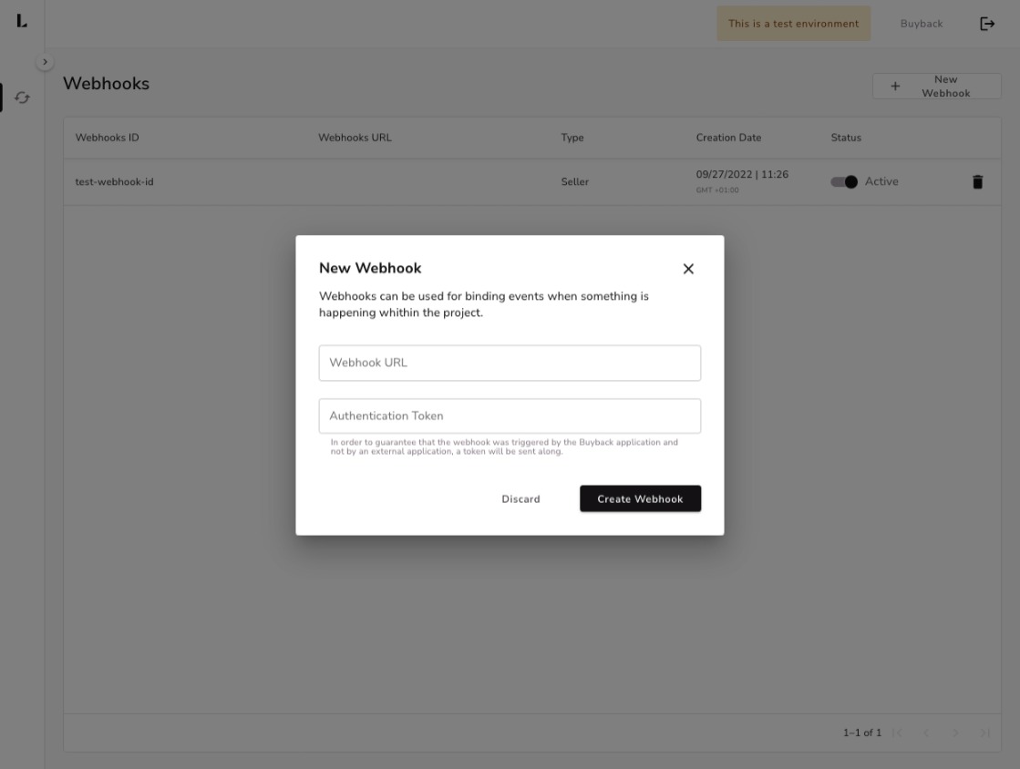We recommend the practice of securing Webhooks with HTTPS on your endpoint. As stated in the image above, it is possible to add an Authentication Token. This is a token that should be stored on your end and is sent along with the Webhook notification. This way, your application can verify that the request is really originated from the Buyback Platform.